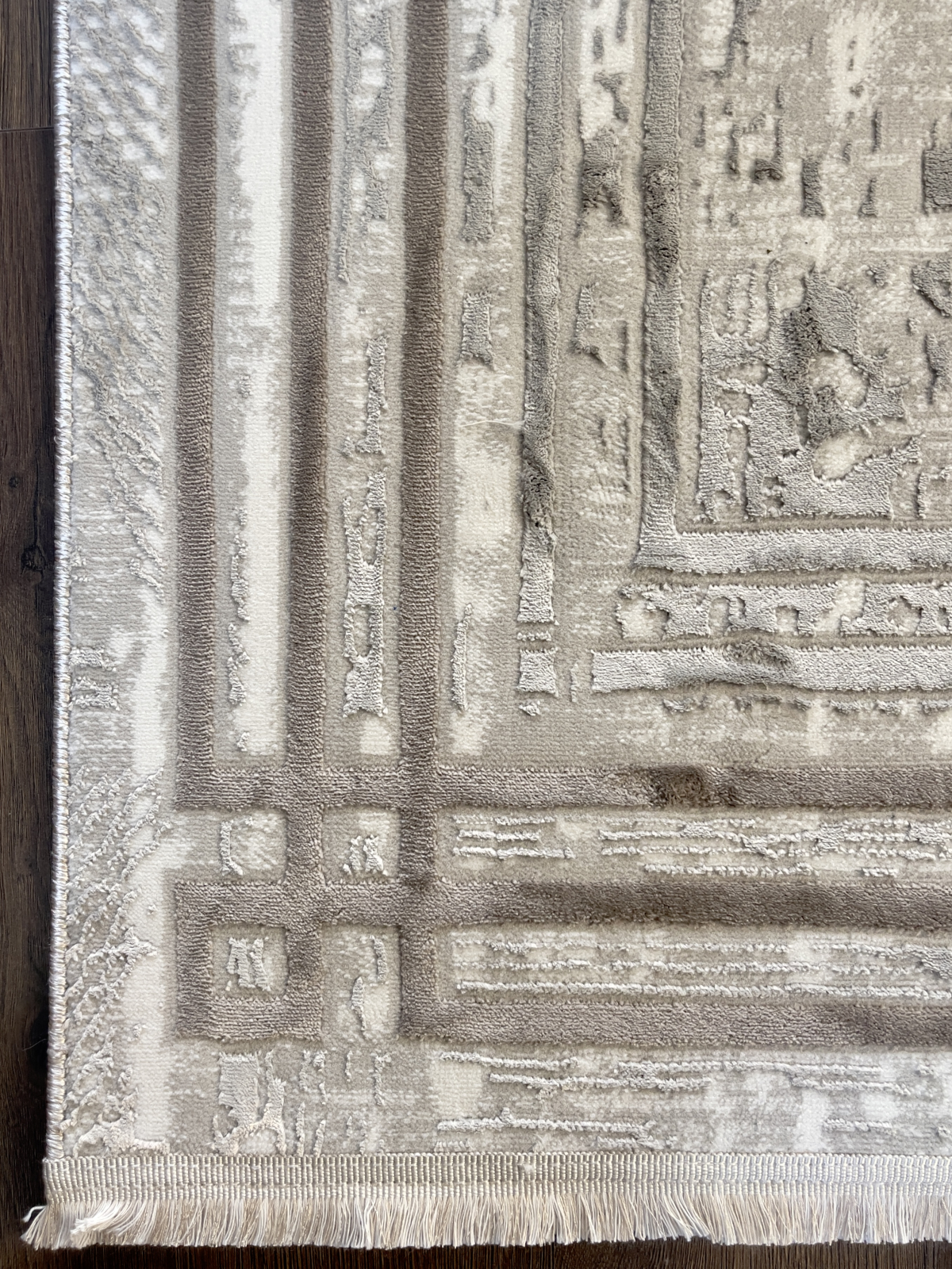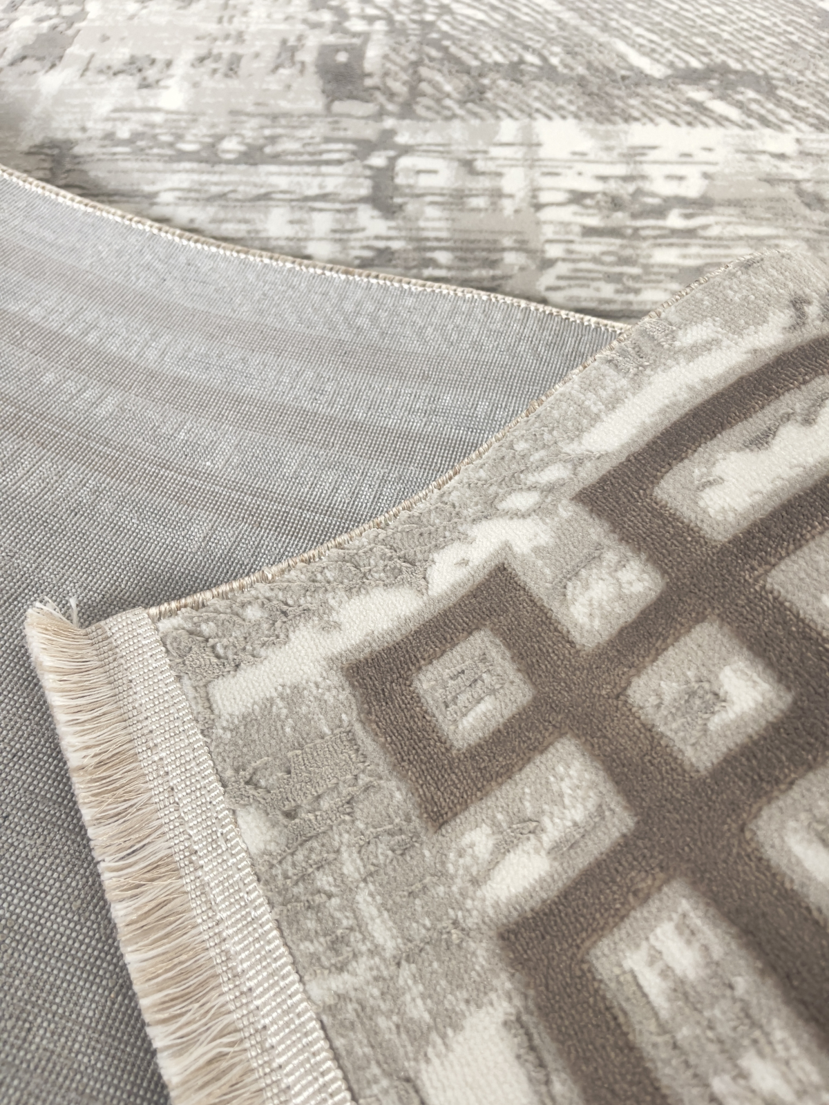 Acest covor modern este conceput pentru a oferi confort și funcționalitate în spațiile de zi. Modelul geometric cu linii bine definite, realizat în nuanțe de gri și bej, creează un aspect ordonat și se potrivește ușor cu mobilier deschis sau închis la culoare. Designul său ajută la delimitarea zonei de living sau a spațiului de relaxare, fără a încărca vizual încăperea.