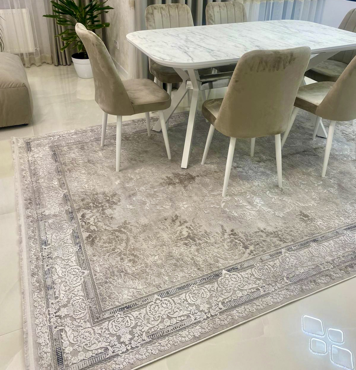 Covorul din acril si viscoză este o alegere elegantă și durabilă pentru decorul casei. Acrilul conferă rezistență și usurintă în întreținere. Viscoza, cunoscută și sub numele de mătase artificială, adaugă un luci deosebit si o textură moale.