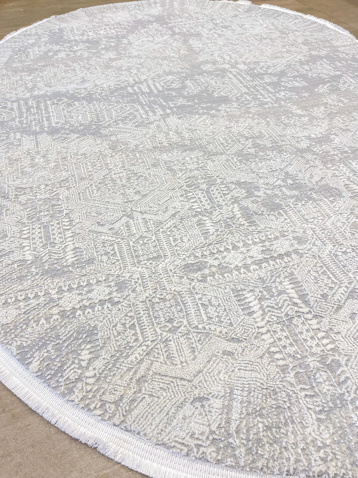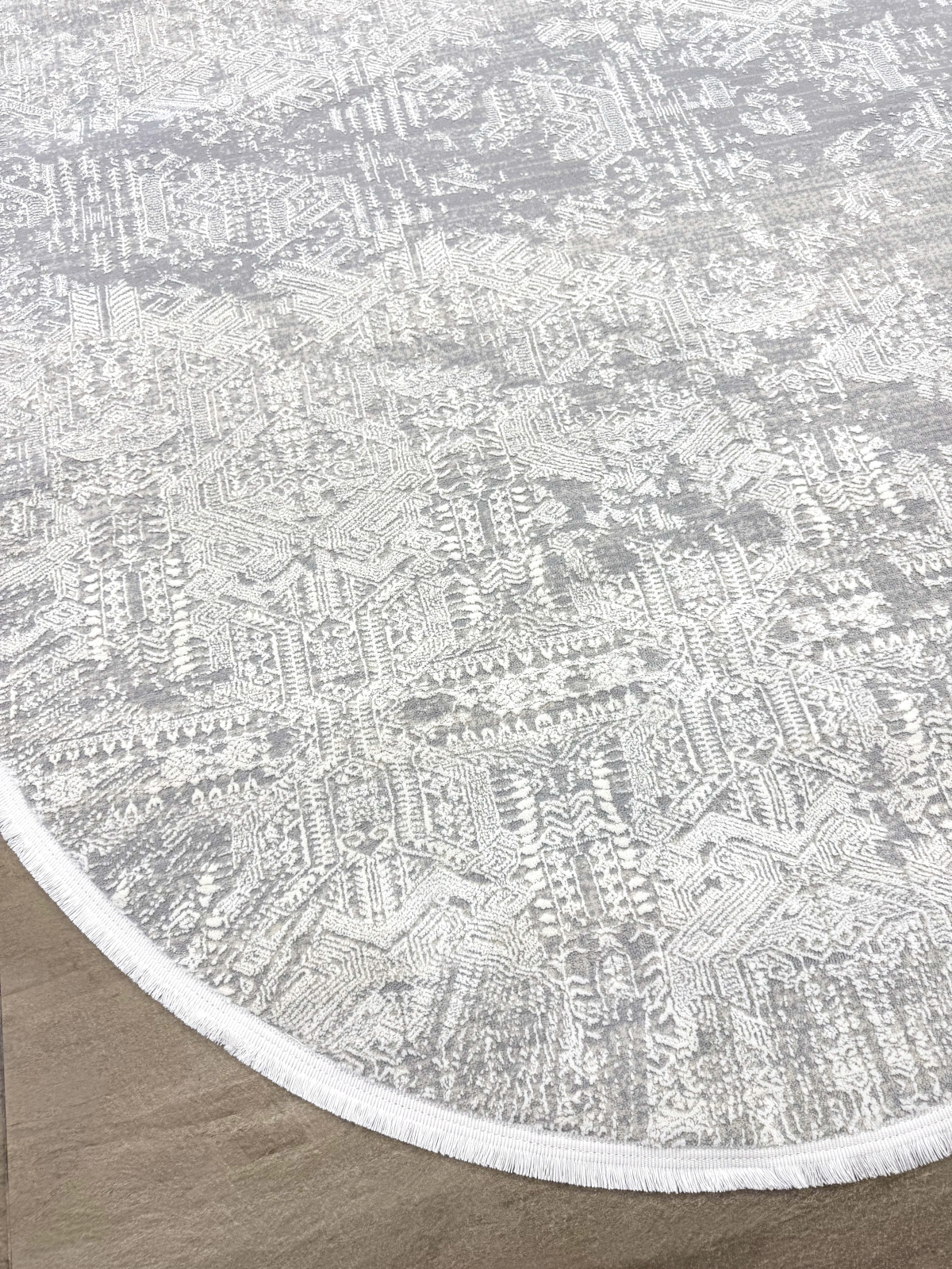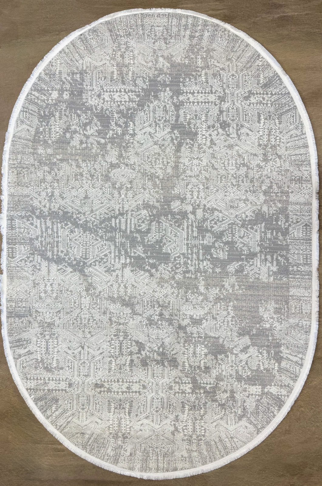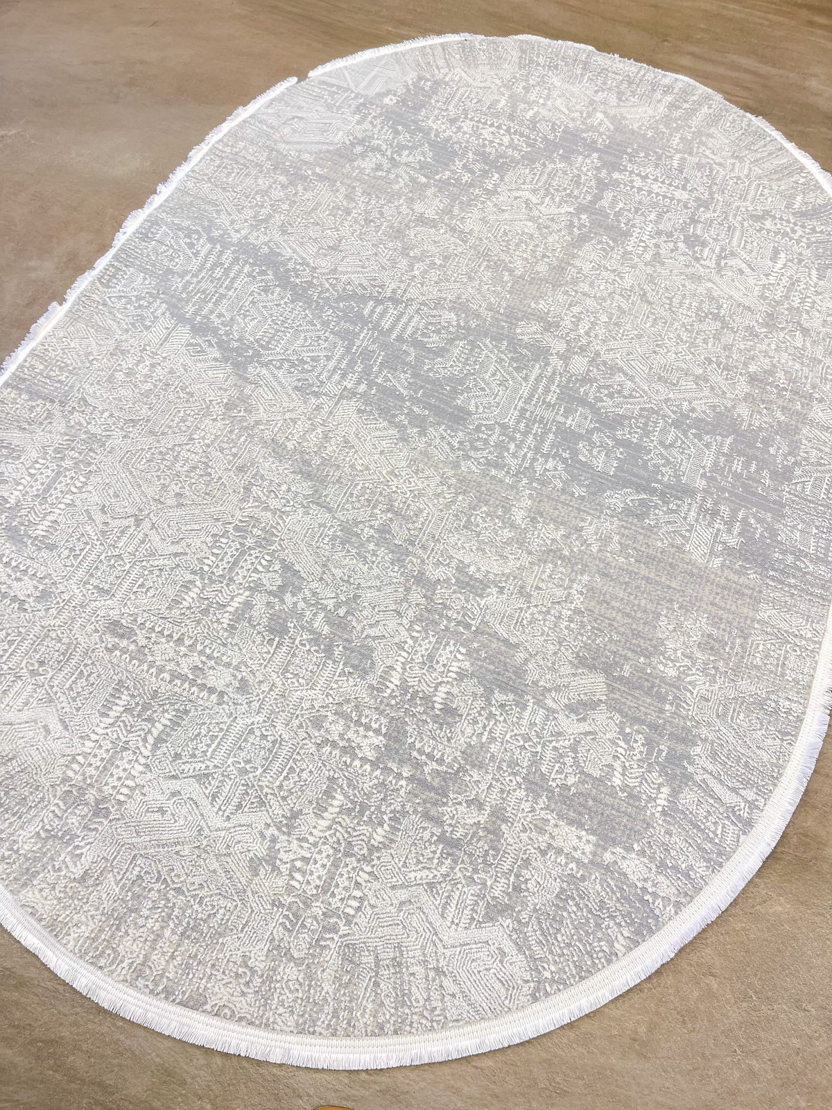 Covor oval, modern în nuanțe de gri și alb, cu textură fină și design minimalist. Discret și elegant, se integrează ușor în orice decor contemporan, aducând luminozitate și echilibru încăperii.