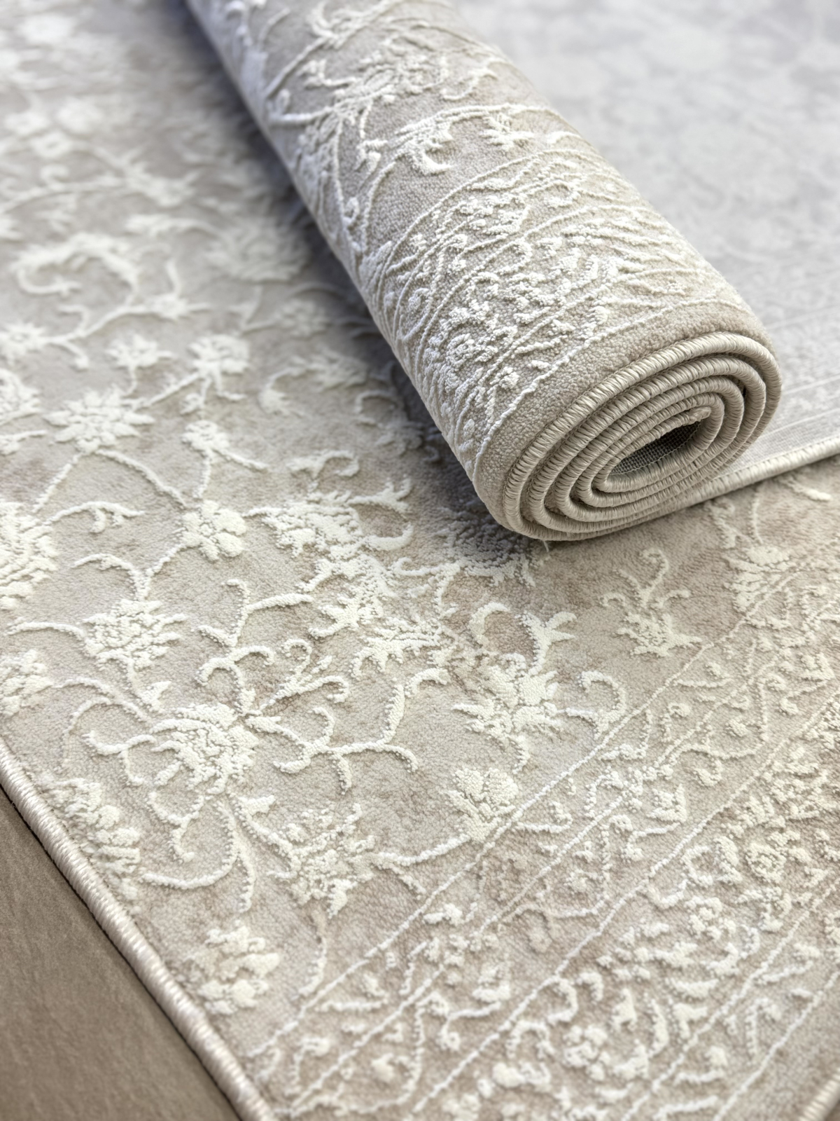 Covorul este o alegere inspirată pentru cei care își doresc un decor echilibrat, cu un strop de eleganță clasică, dar adaptat nevoilor moderne de confort și funcționalitate.Acest covor impresionează prin designul său clasic, cu motive florale delicate și o paletă de culori discretă în tonuri de bej și alb. Modelul său elegant îl face ușor de integrat atât în camere moderne, cât și în interioare decorate în stil tradițional.