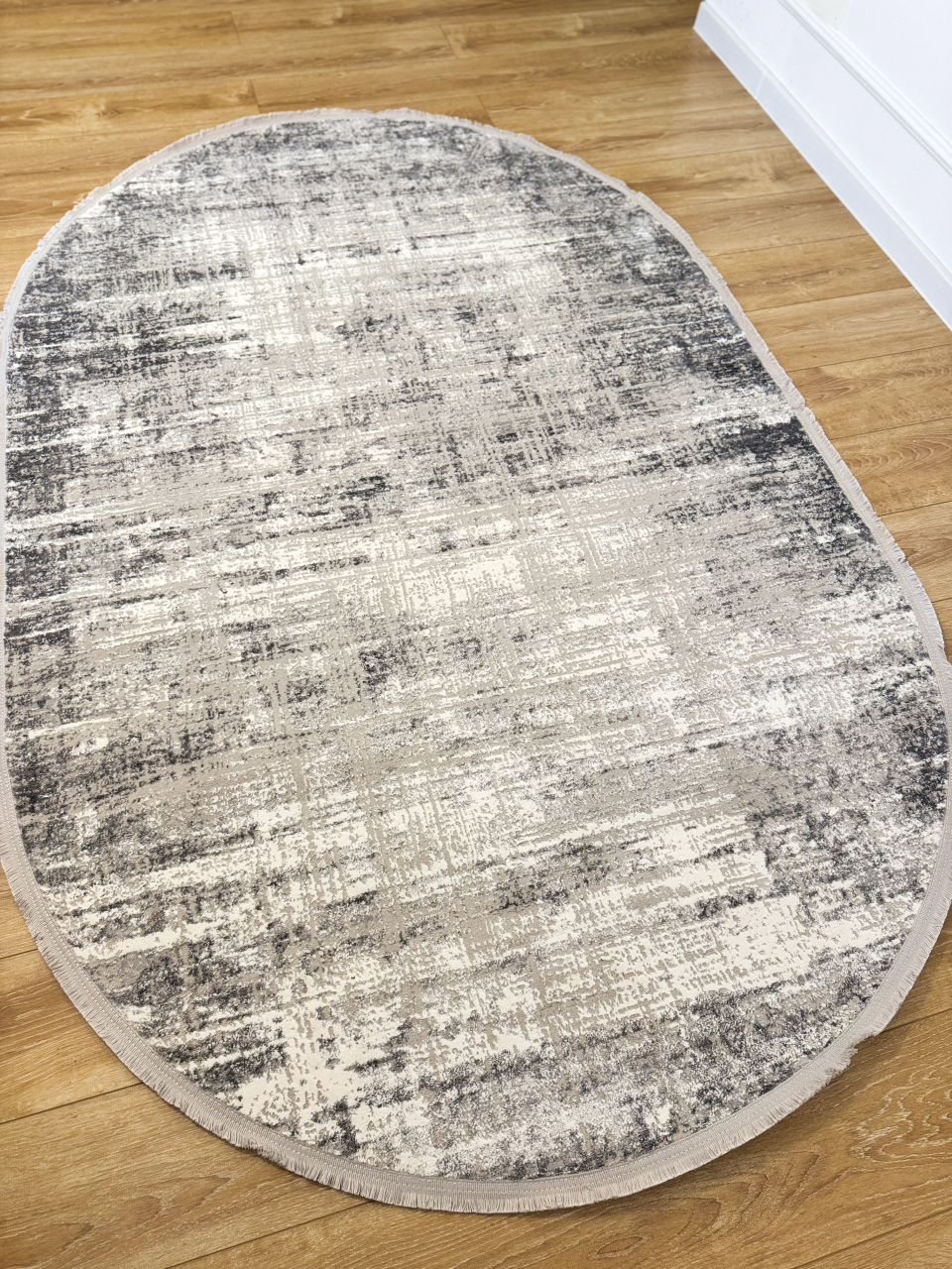 Covor oval - model abstract in nuante de gri si alb